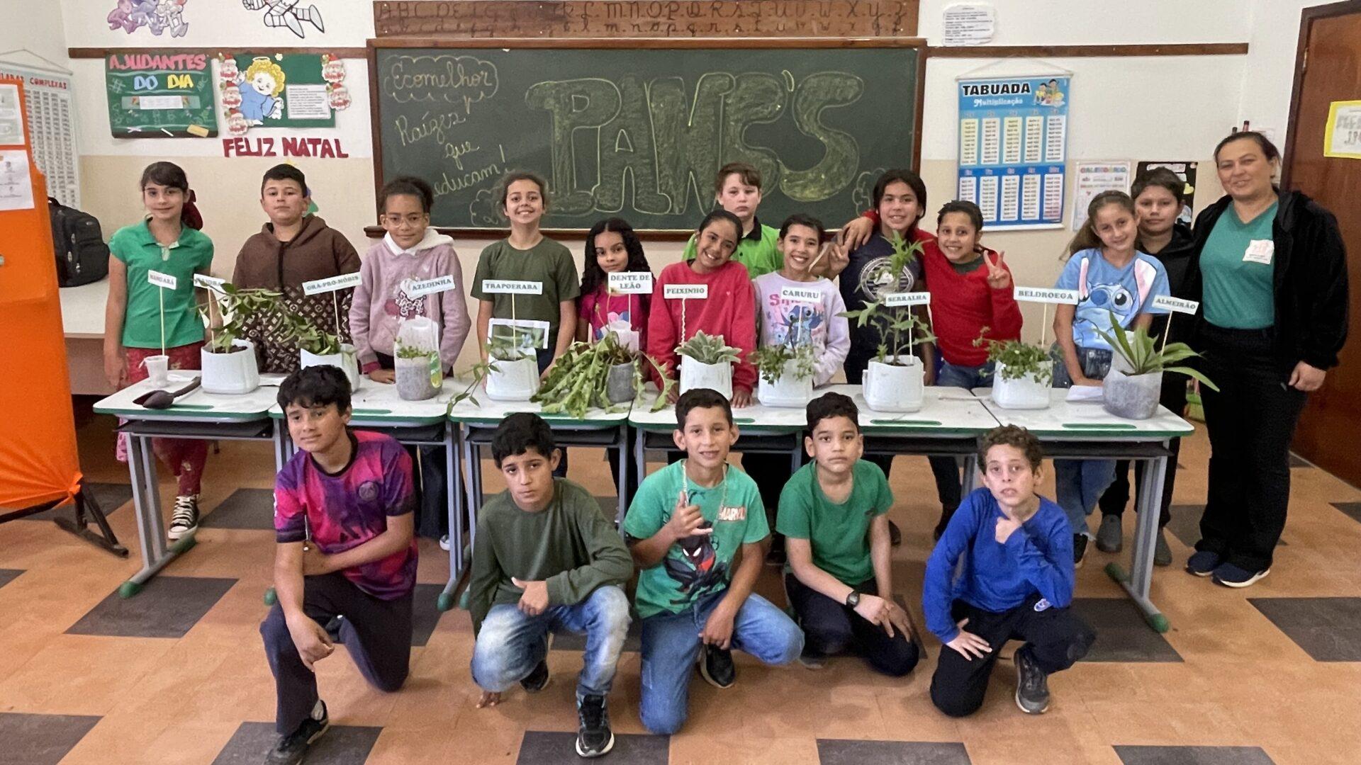 Alunos em atividades sobre PANCs do projeto Eco Melhor da Melhoramentos | Foto: Divulgação